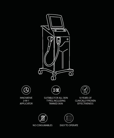 The machine gradually heats the dermis to a temperature that effectively 'kills' the hair follicle and prevents hair growth.